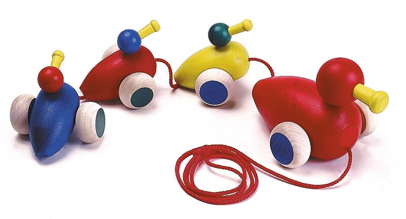 Maman canard en solo ou avec ses trois petit se dodeline derrière celui qui les tirent.