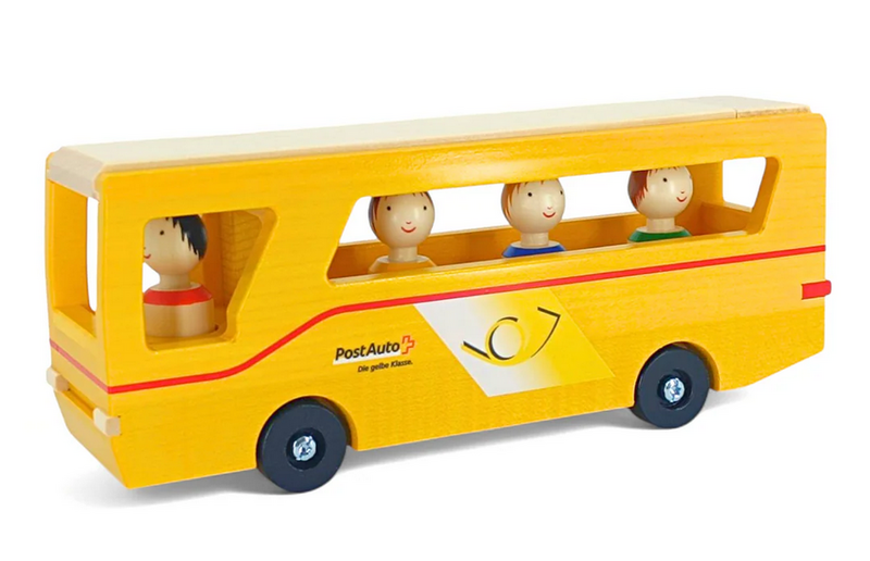 Cars postal en bois avec 6 passagers et le chauffeur.